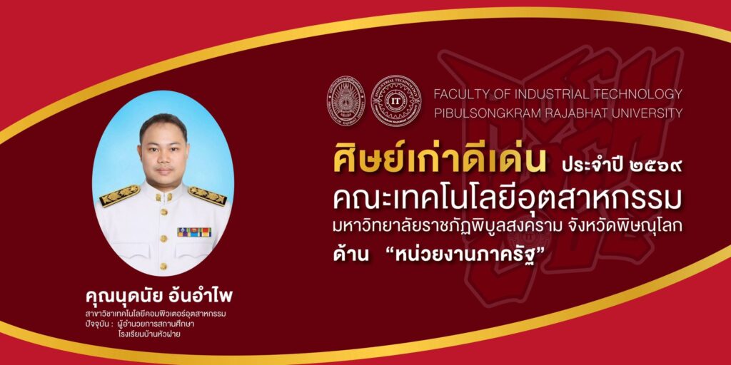 สาขาวิชาวิศวกรรมคอมพิวเตอร์ คณะเทคโนโลยีอุตสาหกรรม มหาวิทยาลัยราชภัฏพิบูลสงคราม ขอแสดงความยินดีกับ ศิษย์เก่าทั้ง 3 ท่าน ในโอกาสได้รับรางวัล “ศิษย์เก่าดีเด่น” 🏅 ในโครงการคืนสู่เหย้าศิษย์เก่าสานสัมพันธ์ชาวคณะเทคโนโลยีอุตสาหกรรม (Back to Techno)