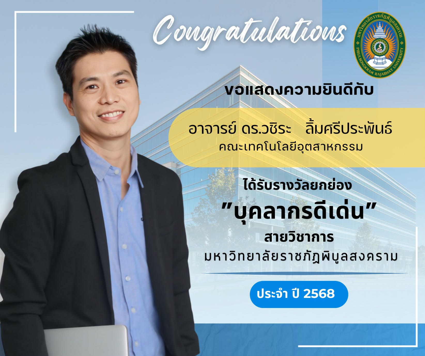 ในโอกาสที่ท่านได้รับรางวัลยกย่อง “บุคลากรดีเด่น” สายวิชาการมหาวิทยาลัยราชภัฏพิบูลสงคราม ประจำปี 2568 อันเป็นเกียรติและความภาคภูมิใจของสาขาวิศวกรรมคอมพิวเตอร์ รวมถึงเป็นแรงบันดาลใจให้แก่นักศึกษาและบุคลากรทุกคน