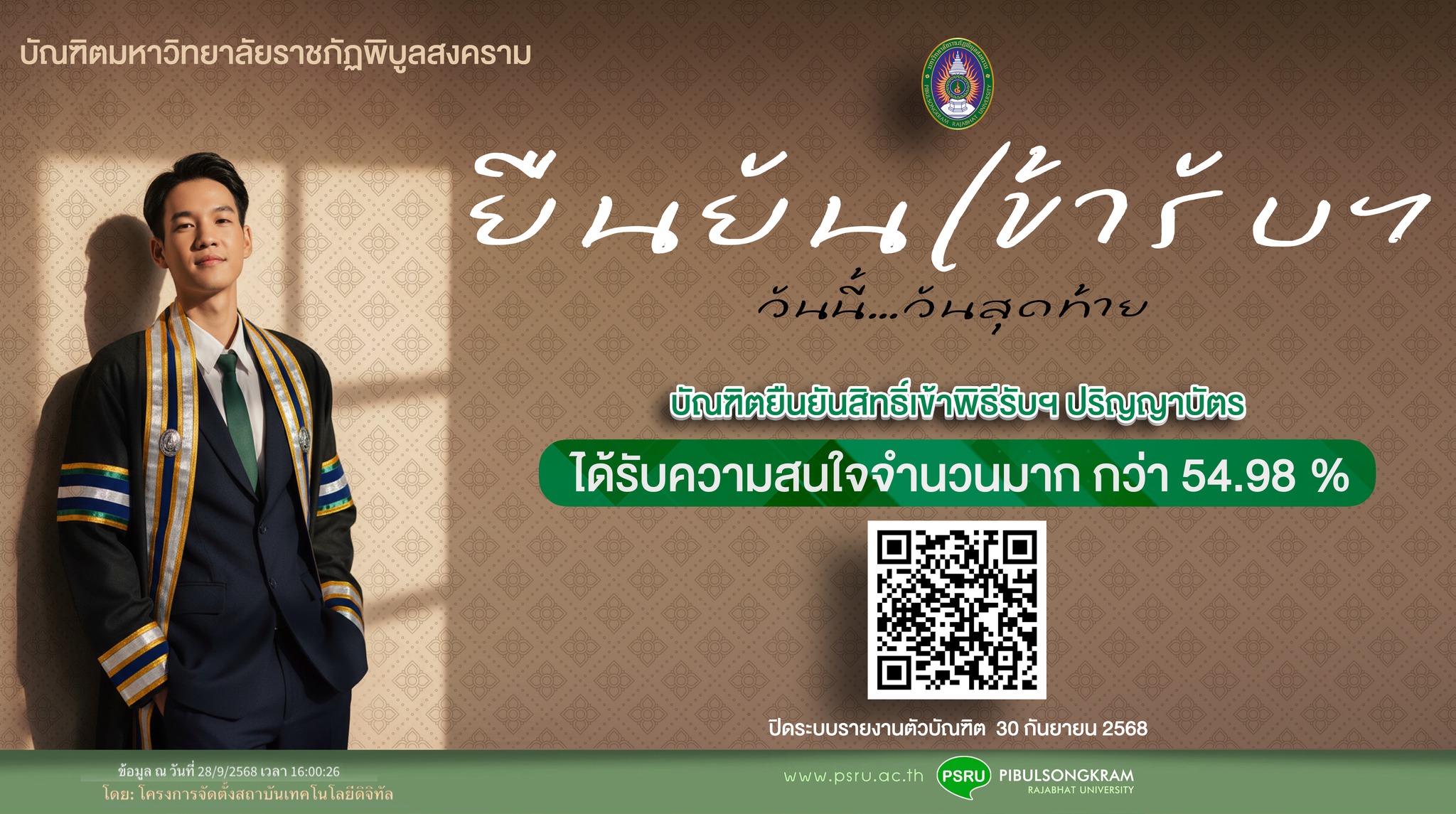 ☑️ บัณฑิตมหาวิทยาลัยราชภัฏพิบูลสงครามต้องยืนยันสิทธิ์ว่าจะเข้ารับหรือไม่เข้ารับพระราชทานปริญญาบัตร
